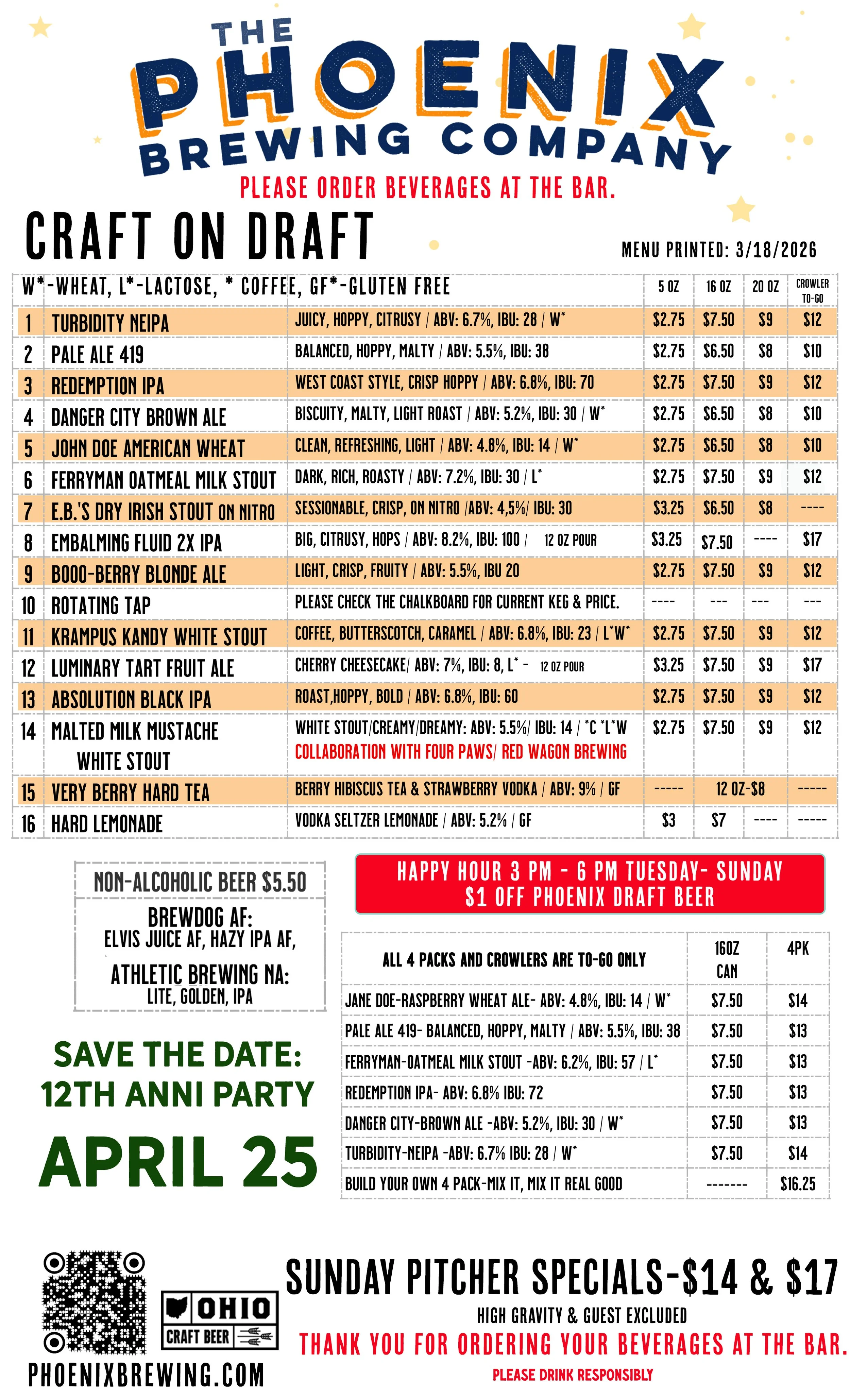 TAPROOM Craft Beer Menu